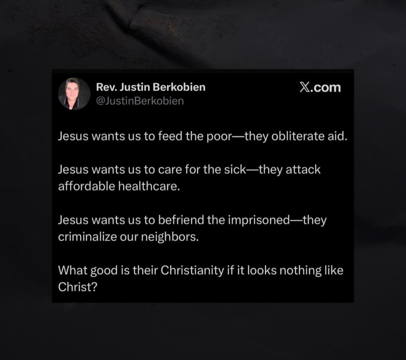 “SNAP cuts are sinful. Jesus was a refugee. USAID saves lives.”