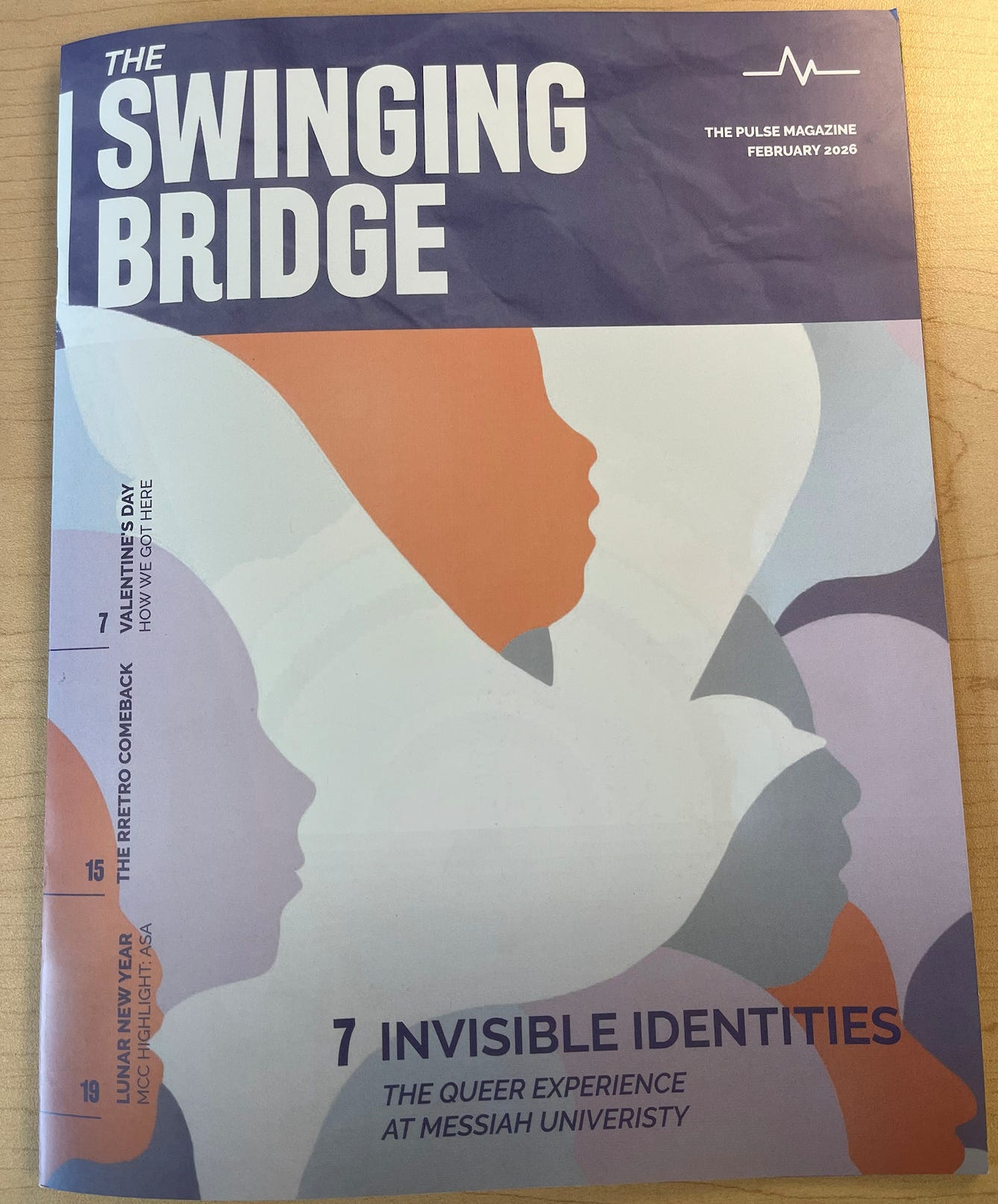 The February 2026 issue ran a six-page feature titled "Invisible Identities: The Queer Experience at Messiah University." It opened with this premise: "Although the exact number of queer students at Messiah University is unknown, several students have felt that the current policies regarding same-sex relationships and queer identities have negatively impacted their time on campus." From that premise, the piece interviewed students and alumni who felt harmed by Messiah's commitment to historic Christian sexual ethics, with no defense from any alumni who appreciate the institution's courage to hold clearly and faithfully to Scripture. It presented one side of a serious debate under the guise of journalism.