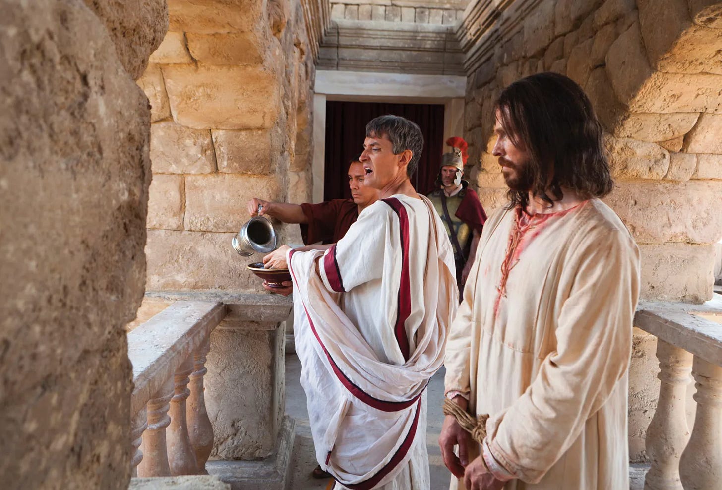 In spite of this, though, he gives in to the pressure of the mob, fearing a backlash, and hands him over to be killed. “So when Pilate saw that he was gaining nothing… he took water and washed his hands before the crowd, saying, ‘I am innocent of this man’s blood. It is your responsibility.”